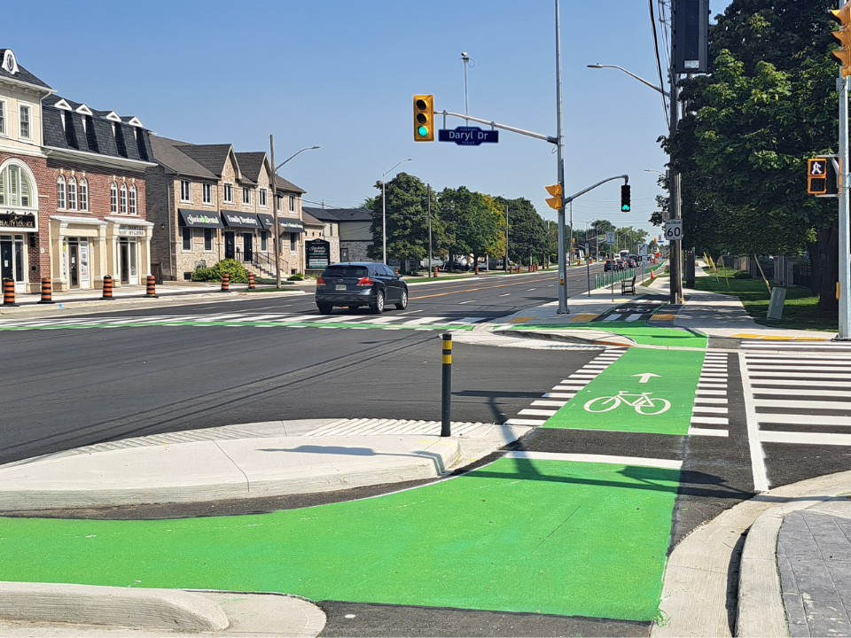 Advocated for and achieved significant safety enhancements over old design during construction of the Sutton and Dundas intersection in Burlington, reducing risks for pedestrians and cyclists over older design. These improvements will be replicated along the rest of Dundas Street in future projects.
